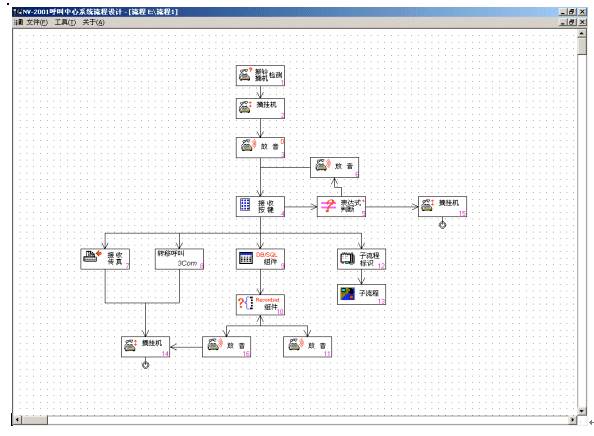 NV-IVR是一個(gè)使用方便、功能強(qiáng)大支持持續(xù)開(kāi)發(fā)的開(kāi)放式產(chǎn)品。NV-IVR運(yùn)用圖形化按鈕,直觀顯示各個(gè)子模塊的主題,使用者只要通過(guò)簡(jiǎn)單的拖曳、配置就可以生成一棵樹(shù)狀流程圖,直觀地對(duì)照IVR的實(shí)際運(yùn)行流程。用戶(hù)需要對(duì)實(shí)際流程進(jìn)行修改,只須對(duì)流程圖修建即可。NV-IVR可以完成以下一些主要功能: