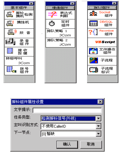 IVR:兩種方案的呼叫中心,目前的IVR系統(tǒng),均采用計(jì)算機(jī)語(yǔ)音卡方式進(jìn)行集成。這些語(yǔ)音板卡,既可以采用目前流行的板卡,也可以采用自行設(shè)計(jì)的板卡。利用廠商提供的API接口,開(kāi)發(fā)者可以編寫(xiě)各種語(yǔ)音流程業(yè)務(wù)。PBX交換機(jī)方案的IVR一般由PBX廠家作了主要的功能開(kāi)發(fā),使用者只須應(yīng)用、配置。基于語(yǔ)音板卡的呼叫中心一般板卡廠家提供API接口,開(kāi)發(fā)者應(yīng)用開(kāi)發(fā)的靈活性較大。
