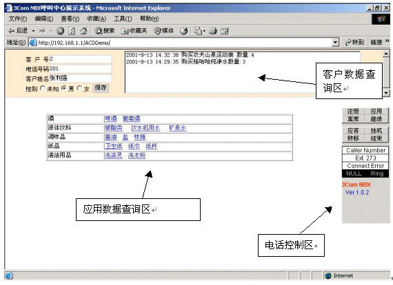 NV-AGENTControl和NV-AGENTPad。NV-AGENTControl是基于ActiveX的Ocx控件,利用該控件,第三方開(kāi)發(fā)商可以自行開(kāi)發(fā)界面,非常簡(jiǎn)單地實(shí)現(xiàn)座席工號(hào)注冊(cè)、呼叫應(yīng)答、電話外撥等功能。NV-AGENTPad是在NV-AGENTControl之上開(kāi)發(fā)的一個(gè)座席應(yīng)用解決方案,它通過(guò)瀏覽器方式運(yùn)行,第三方開(kāi)發(fā)商基本上可以不進(jìn)行任何有關(guān)呼叫控制方面的開(kāi)發(fā),就可以將自己的應(yīng)用系統(tǒng)和NBX系統(tǒng)完整集成。