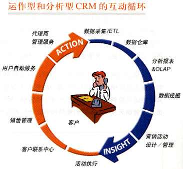 運(yùn)作型CRM和分析型CRM不是孤立的模塊,他們之間是互動(dòng)的,首尾相接關(guān)系。分析型CRM從客戶背景資料和消費(fèi)數(shù)據(jù)經(jīng)過數(shù)據(jù)采集、數(shù)據(jù)倉庫、數(shù)據(jù)挖掘和分析而得出分析的結(jié)論。這些結(jié)論又被制定成為市場(chǎng)活動(dòng)被運(yùn)營(yíng)型CRM通過客戶聯(lián)系中心、銷售管理、大客戶管理等模塊進(jìn)行執(zhí)行。執(zhí)行的結(jié)果和反饋又重新被分析系統(tǒng)進(jìn)行分析和評(píng)價(jià)形成一個(gè)循環(huán)過程。 亞信科技(中國(guó))有限公司 地 址:北京海淀區(qū)中關(guān)村南大街6號(hào)中電信息大廈三、四層 |
