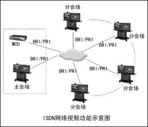 ISDN網(wǎng)絡(luò)連接:借助思科IP視頻會(huì)議系統(tǒng),目前廣泛使用的ISDN通信網(wǎng)可以與視頻終端ISDN PRI或BRI接口相連,通過撥號(hào)與任何一個(gè)會(huì)場(chǎng)進(jìn)行隨時(shí)隨地的連接。另外,采用ISDN線路還可以起到網(wǎng)絡(luò)備份和延伸的作用。ISDN線路的建設(shè)非常方便,各分會(huì)場(chǎng)可以從電信部門申請(qǐng)ISDN線路,并在1至2周內(nèi)完成線路到位。