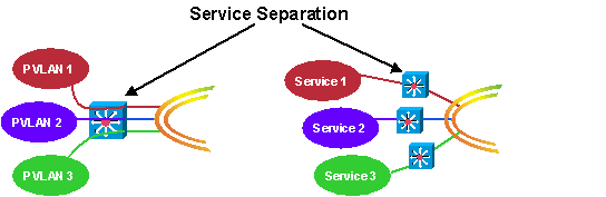 利用這種設計,服務必須在連接網絡主體前進行劃分。圖1右側對在DWDM網絡中將各項服務分配至不同設備的方式進行了介紹。 這樣就形成了融合物理骨干網,但各網絡獨立。這種融合骨干、獨立網絡的方式實現(xiàn)了非常高的網絡安全性,但也增加了開支。圖1左側介紹了獨立于DWDM環(huán)的單一設備,服務是由虛擬LAN(VLAN)或專用VLAN來劃分的。