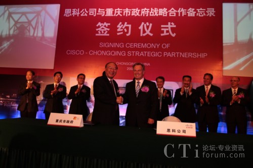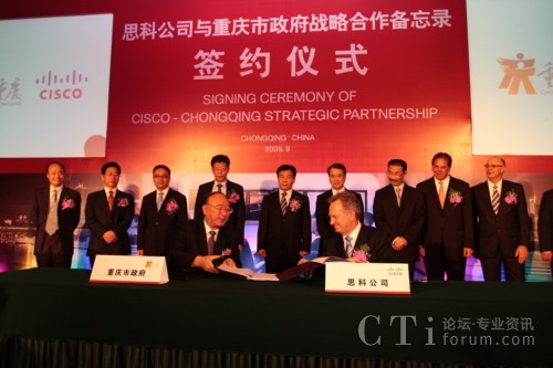 CTI論壇(ctiforum)9月14日消息:2009年9月11日,重慶市人民政府與思科正式簽訂合作備忘錄,雙方將結為戰(zhàn)略合作伙伴關系,就通信產品制造、“智能+互聯(lián)城市”試點示范、綠色技術研發(fā)與創(chuàng)新及風險投資等多方面展開深入合作。此次合作將進一步加快重慶市產業(yè)結構和產品結構調整,促進內陸開放城市建設;加快發(fā)展重慶通信產品產業(yè)集群,把重慶建設成為西部重要的現(xiàn)代通信產品制造基地;推動以信息產業(yè)為主體的重慶高新技術產業(yè)發(fā)展以及本土創(chuàng)新和可持續(xù)性能力的提供,更高效便捷地加快本土企業(yè)的國際化進程;整合多方國際資源,以推進重慶在中國率先成為“智能+互聯(lián)城市”,讓市民享受更多的工作和生活便利及實惠。作為思科在華創(chuàng)新及可持續(xù)發(fā)展戰(zhàn)略實施的又一里程碑,此次合作不僅是思科“智能+互聯(lián)城市”計劃在中國與當?shù)卣氖锥群献黜椖浚彩撬伎圃凇皡f(xié)作型創(chuàng)新模式”指導下激勵本土創(chuàng)新的全新實踐。