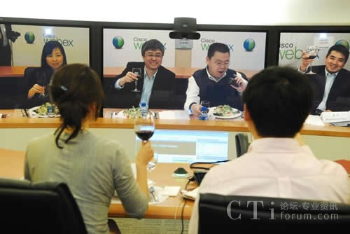 CTI論壇(ctiforum)5月6日消息(記者 楊佳林):中國(guó),北京,2010年4月28日:無(wú)需像德國(guó)國(guó)防部長(zhǎng)古滕貝格那樣駕車(chē)行駛3000多公里長(zhǎng)途奔襲,跨越太平洋也一樣享受零距離的午餐。思科中國(guó)首席技術(shù)官梁永健、思科中國(guó)區(qū)副總裁華東區(qū)總經(jīng)理陳葵、思科WebEx研發(fā)及協(xié)作軟件全球副總裁袁征今天通過(guò)思科的網(wǎng)絡(luò)會(huì)議技術(shù)和中國(guó)知名博主在北京、上海和舊金山三地共進(jìn)午餐。