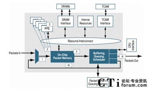 傳統(tǒng)的網(wǎng)絡(luò)處理器為了優(yōu)化報文分類和處理速度并節(jié)省內(nèi)存訪問帶寬,通常僅訪問數(shù)據(jù)包頭以獲得較高的轉(zhuǎn)發(fā)吞吐量,當這類處理器進行深度數(shù)據(jù)包檢測(DPI),防火墻,網(wǎng)絡(luò)地址轉(zhuǎn)換(NAT),Netflow等復(fù)雜操作時,將會對性能造成不良影響。