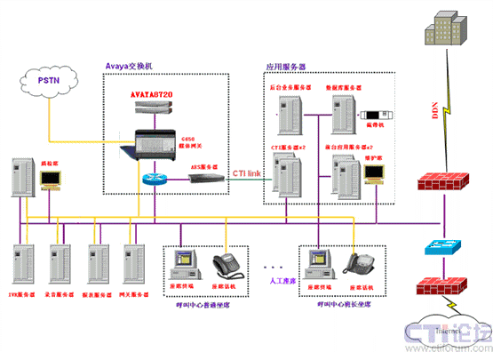 95190呼叫中心項目采用國際知名品牌AVAYA交換機作為系統(tǒng)接入處理,提供了包括數(shù)據(jù)庫服務(wù)器、文件服務(wù)器、CTI/IVR服務(wù)器、中間件服務(wù)器等相關(guān)后臺強有力的支撐服務(wù)設(shè)備,提供了三層網(wǎng)絡(luò)交換機、硬件防火墻等網(wǎng)絡(luò)設(shè)備等。整個系統(tǒng)達到960路中繼接入、180路人工座席、20路IP座席、360路IVR、15路傳真;支持7號信令、ISDN信令等信令協(xié)議;提供人工座席的實時同步錄音。
