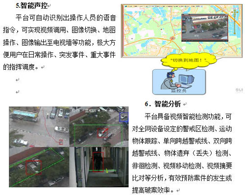 由于海量視頻信息的出現(xiàn),要求平臺(tái)能利用智能視頻技術(shù)來解決傳統(tǒng)視頻監(jiān)控系統(tǒng)所無法解決的問題。如智能檢索、人臉識(shí)別、車牌識(shí)別、運(yùn)動(dòng)軌跡跟蹤、行為模式分析等,變“被動(dòng)監(jiān)控”為“主動(dòng)監(jiān)控”,以提升視頻監(jiān)控系統(tǒng)的應(yīng)用成效,降低管理成本。