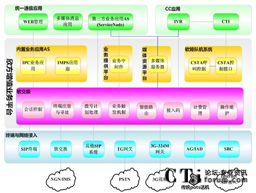 可在此基礎(chǔ)上提供形成了多媒體呼叫中心、IPPBX、IPCentreX、IVR/IVVR二次開(kāi)發(fā)平臺(tái)、一號(hào)通、即時(shí)消息/呈現(xiàn)等一系列的重量級(jí)新型業(yè)務(wù),同時(shí)其所提供的業(yè)務(wù)開(kāi)發(fā)能力允許第三方自主的研發(fā)和部署的業(yè)務(wù)應(yīng)用,滿(mǎn)足業(yè)務(wù)應(yīng)用的個(gè)性化需求。