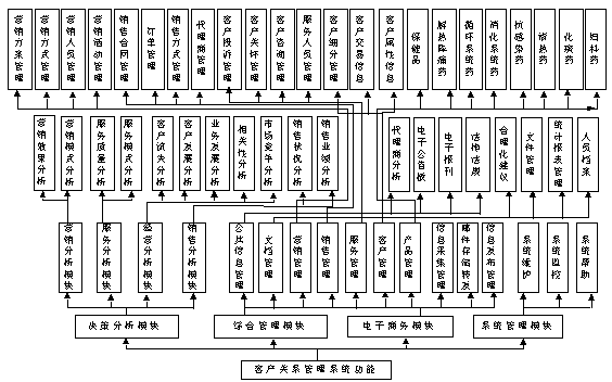 根據(jù)分析,將醫(yī)藥行業(yè)的客戶(hù)關(guān)系管理功能分為四個(gè)主要模塊: