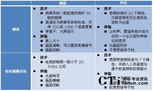 網(wǎng)真產(chǎn)品與企業(yè)的其他視覺(jué)溝通產(chǎn)品不同,不同于以軟件為基礎(chǔ)的視頻通信應(yīng)用、電話視頻、以硬件為基礎(chǔ)的桌面視頻系統(tǒng)及群體視頻會(huì)議等各類傳統(tǒng)視頻系統(tǒng)。Frost