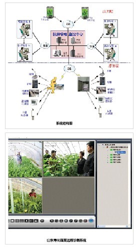 在應(yīng)用案例中,山東壽光蔬菜遠(yuǎn)程診斷系統(tǒng),是基于大唐電信無(wú)線EDGE/TD視頻系統(tǒng)平臺(tái)的遠(yuǎn)程農(nóng)業(yè)專家系統(tǒng)。應(yīng)用此系統(tǒng),可對(duì)大棚里的溫度、濕度進(jìn)行采集,并疊加到視頻圖像上,進(jìn)行上傳。農(nóng)業(yè)專家可通過(guò)視頻圖像判斷植株生長(zhǎng)情況、檢查是否有病蟲害、大棚的溫濕度是否合適,并可以檢測(cè)土壤的酸堿度等信息,為農(nóng)戶提供相應(yīng)的指導(dǎo),獲得了良好的社會(huì)效益和經(jīng)濟(jì)效益。