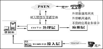接入層主要負責公網(wǎng)(固定網(wǎng)、移動網(wǎng)、互聯(lián)網(wǎng))與系統(tǒng)相接的部分,處理電話呼入/呼出的信令、話路的交換及互聯(lián)網(wǎng)的接入、數(shù)據(jù)的處理。