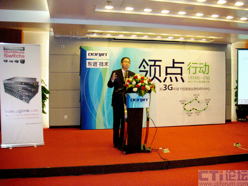 同時(shí),會(huì)上全面、系統(tǒng)地介紹了東進(jìn)Keygoe系列產(chǎn)品在3G環(huán)境下的創(chuàng)新運(yùn)用及行業(yè)解決方案。并在現(xiàn)場(chǎng)對(duì)Keygoe多媒體交換機(jī)在3G增值業(yè)務(wù)中的折扣搜尋店、移動(dòng)保安和電話(huà)QQ面對(duì)面等業(yè)務(wù)進(jìn)行演示,展示了IVVR、視頻監(jiān)控和視頻會(huì)議等亮點(diǎn)功能,突出其視頻特性,成為此次巡展的一大熱點(diǎn)。