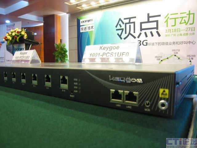 據(jù)了解,此次演示是基于以東進Keygoe多媒體交換機為主體的平臺,東進Keygoe多媒體交換機系列產(chǎn)品提供融合、開放、靈活和高性能的多業(yè)務(wù)承載平臺,可與3G網(wǎng)絡(luò)完全融合。此外在現(xiàn)場,Keygoe