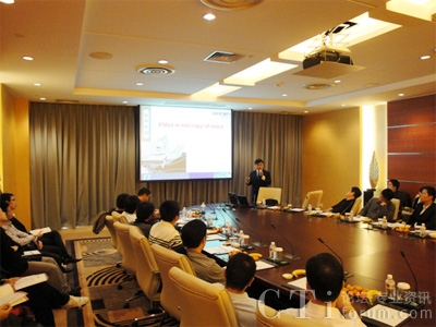 東進(jìn)Keygoe產(chǎn)品經(jīng)理劉駿先生是本次活動(dòng)當(dāng)之無(wú)愧的頂梁柱,活躍在沙龍活動(dòng)的每一站。他對(duì)3G通信市場(chǎng)進(jìn)行了深入淺出的分析,借鑒國(guó)外成功的案例經(jīng)驗(yàn),并對(duì)中國(guó)可能的熱點(diǎn)業(yè)務(wù)做出東進(jìn)的預(yù)測(cè),即在將來(lái),手機(jī)上網(wǎng),視頻點(diǎn)播,定位服務(wù)以及下載服務(wù)可能成為熱點(diǎn),同時(shí),重點(diǎn)列舉和分析了東進(jìn)在3G業(yè)務(wù)應(yīng)用的探索成果和經(jīng)驗(yàn)。會(huì)中對(duì)將視頻功能嵌入到“3G總機(jī)一號(hào)通”這類(lèi)應(yīng)用的描述,非常引人入勝,尤其讓人注意的是,他認(rèn)為3G視頻在將來(lái)不會(huì)作為一個(gè)單獨(dú)的業(yè)務(wù)而存在,而公眾業(yè)務(wù)并沒(méi)有如預(yù)期般成為主流。此外,以國(guó)慶60周年閱兵空中梯隊(duì)現(xiàn)場(chǎng)指揮調(diào)度系統(tǒng)應(yīng)用為例,對(duì)行業(yè)呼叫中心的成功案例分享以及重點(diǎn)行業(yè)的前景預(yù)測(cè)分析也給客戶(hù)留下很深刻的印象。劉駿表示,對(duì)于正進(jìn)入新格局的市場(chǎng),多媒體交換機(jī)正愈加凸顯其多媒體處理性能,并加速與其他通信系統(tǒng)的融合,而理解客戶(hù)的需求,成為重中之重。