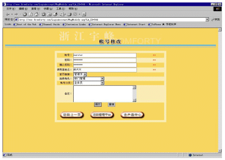帳號系統(tǒng)主要是為適應(yīng)一個(gè)分銷商內(nèi)部會(huì)有多個(gè)不同等級的人使用這個(gè)系統(tǒng)。對于分銷商而言,它可以建立多個(gè)帳號,并為每個(gè)帳號分配不同的權(quán)限,以及每個(gè)帳號可以對應(yīng)管理不同下屬企業(yè)(參看圖5和圖6)。還可以為不同的帳號提供不同的進(jìn)入頁面,使得用戶使用更加方便。