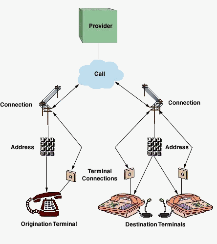 程序員在掌握利用JTAPI編寫CTI程序之前,首先得搞清JTAPI最基本的電話模型,這個模型是搭建CTI程序的基礎(chǔ),它可以以樹狀結(jié)構(gòu)表現(xiàn)出來(如下圖)。