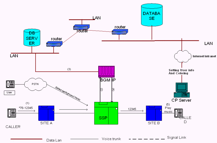 2、根據(jù)用戶撥打?qū)Ψ教柎a的不同選擇不同的SSP,如果前綴有"*76",就會進(jìn)入BGM IP服務(wù)器,該通話會有用戶所定義的背景音樂,如果前綴沒有"*76",