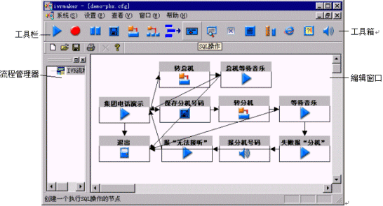 ZingServ標(biāo)準(zhǔn)版本中的IVR可以直接通過(guò)SQL語(yǔ)句存取Mysql,Oracle,Sybase和MSSQL Server這4種數(shù)據(jù)庫(kù),并且可以通過(guò)變量一次對(duì)多條記錄中的多個(gè)字段進(jìn)行操作。這種方式大大減少了二次開(kāi)發(fā)的工作量,給集成商和最終用戶帶來(lái)了許多方便。