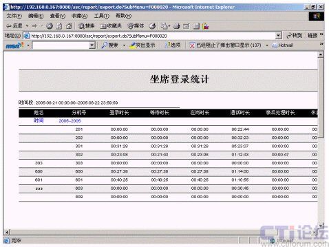 2.項目組外撥分析:包括手動外呼話費明細表、手動外呼話費總計表、項目組手動外呼日報告、項目組自動外呼日報告、項目組座席外撥總計、自動外呼話費明細表、自動外呼話費總計表、座席外呼日報告等。該統(tǒng)計報表分別提供了針對手動和自動的外撥話務、話費統(tǒng)計,分類明確,統(tǒng)計方便。