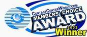 “用戶(hù)最佳選擇獎(jiǎng)”專(zhuān)門(mén)頒發(fā)給呼叫中心方面的最佳公司、解決方案或軟件,獎(jiǎng)項(xiàng)由所有呼叫中心的使用者投票評(píng)選而得。ContactCenterWorld.com
