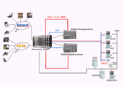 上海市城建12319是一個以12319為一級網絡中心、16個不同職能部分為二級網絡中心、搶修維修執(zhí)行機構或者部門為三級網絡的呼叫中心,完全支持各級網絡之間數據和語音信息的同步轉移。奧迪堅針對城建12319的建設,除了采用先進的分布式技術有效地把16條不同的城建事業(yè)服務統(tǒng)一到12319語音平臺,構建了一個完整的"市民→熱線中心→責任單位→市民"的閉路循環(huán)的城市建設管理工作的服務熱線;而且,其安全保護冗余切換系統(tǒng)成為上海市12319呼叫中心中保證系統(tǒng)安全運行的重要選擇。上海市12319冗余系統(tǒng)包括AltiServ主機和備機,以及一個A/B線路切換器,正常情況下,A/B切換器將所有線路與主機保持連接,所以電話處理由主機完成,而備機則實時監(jiān)測主機并同步配置信息。如果主機的服務意外停止了或損壞了,服務將會在幾秒鐘內切換到備機上,不會影響到12319正常業(yè)務的開展,有效地防止系統(tǒng)意外事故造成的數據的丟失和服務的中斷,保障了12319系統(tǒng)的穩(wěn)定性和服務的連續(xù)性。