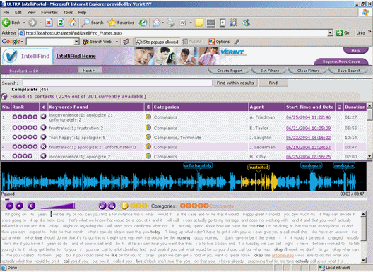 IntelliFind將客戶呼叫轉(zhuǎn)換成可搜索的數(shù)據(jù)庫形式,根據(jù)業(yè)務分類、短語和關鍵字鑒別呼叫。IntelliFind使用語音文本轉(zhuǎn)換技術(shù)轉(zhuǎn)換客戶呼叫錄音,幫助用戶理解客戶交互的情況。