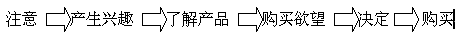 另外在其它的銷售渠道上,如電視、廣播、報紙等,他們對市場目標(biāo)的準(zhǔn)確度都是不高的,因?yàn)檫@樣的原因,也無法對目標(biāo)市場作掌控和測試,雖然他們可以很快速的擴(kuò)展市場,對市場產(chǎn)生很大的響應(yīng)力,但如果沒有很好的市場營銷與品牌整體性和長期性規(guī)劃,也很快的會變成曇花一現(xiàn),歷史中的記憶,這些渠道的成本也是最高的,所以不是所有的企業(yè)都能一體適用的,尤其是中小型企業(yè)是無法長期負(fù)擔(dān)的。誠如在之前的文章里面分析所講的,最好的銷售效果是一拉一推的力量,用多媒體感官性及理性的獲取消費(fèi)者的注意力,再配合快速效能的主動銷售,往往能將營銷的效果提升到最高的層面。將到這兒,就不得不順帶提到消費(fèi)者購買的行為模式。我們將消費(fèi)者對購買的心理和行為分為幾個階段: