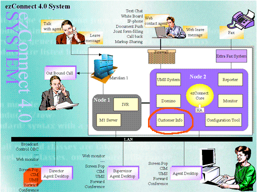 作為一種成功的企業(yè)應用案例,這種方案已經成功的應用在我們的企業(yè)級多媒體呼叫中心 ezConnect產品中,該產品能同時處理傳統呼叫中心的電話請求和以互聯網為中心的Web 請求,同時配備多種實時交流手段,軟電話功能和基于web 的文本交談,圖片共享,白板,文檔推送,IP電話,UMS, SMS 和WAP 等為客戶提供很方便且實用的功能, 并且提供基于特定技能路由的分配器,同時處理電話和Web請求。而且同時支持多種語言并提供統一的配置工具。當該請求到達座席時,在座席的桌面上彈出客戶的基本信息和交易信息,座席可以根據這些信息給客戶提供更加個性化的服務。本文就針對該產品的實際開發(fā)和實現, 以及工作中的一些感想來與大家共同探討客戶信息管理的應用和前景。