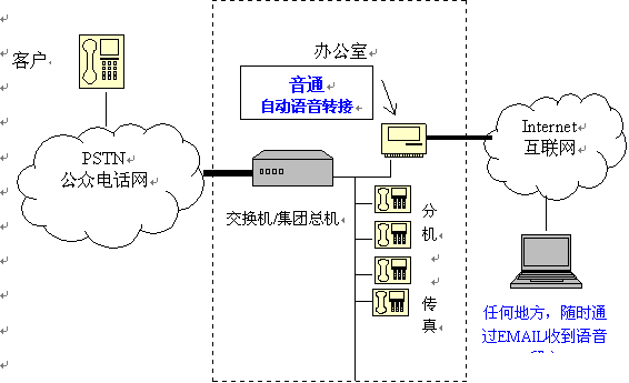 【音通】系統(tǒng)一經(jīng)安裝,生產(chǎn)力及工作效率便可大大提升。接線員不需再無時無刻守候在電話旁邊處理來電。即使在辦公時間過后,此系統(tǒng)仍能繼續(xù)自動運作。方便的語音郵箱功能,隨時隨地收聽E-MAIL。