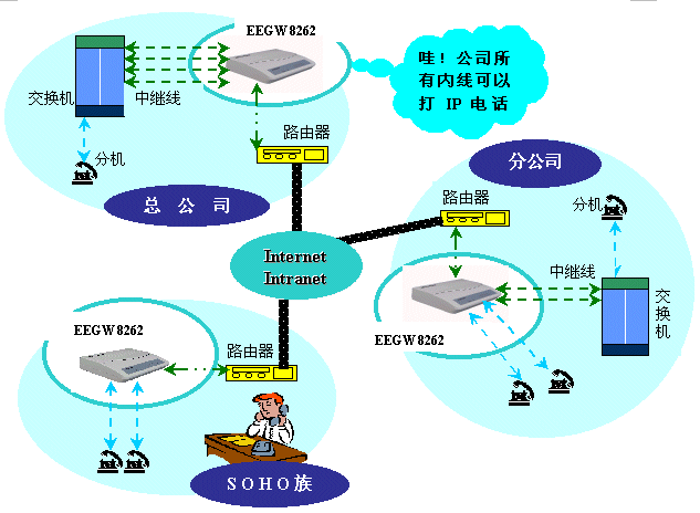 EEGW 8262 FXS根據(jù)國(guó)際電信組織ITU-T的H.323協(xié)議,提供語音及傳真在網(wǎng)際網(wǎng)絡(luò)上的服務(wù),只需一個(gè)IP地址及兩部電話機(jī)〈傳真機(jī)〉,即可享受VoIP的好處;適合住家型,SOHO族,及中小企業(yè)使用。