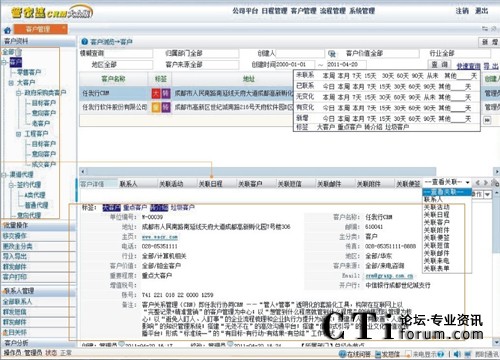 管理企業(yè)所有的目標(biāo)客戶和銷售員手中的意向客戶;知道銷售員與每個客戶的詳細(xì)進(jìn)展;幫助管理銷售員手中的重點(diǎn)客戶或快成交客戶;銷售員離職后客戶資料和他與客戶交往的所有記錄完整保留!