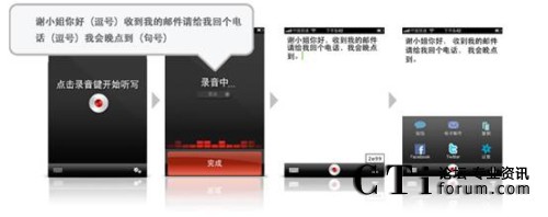聲龍(Dragon)系列應(yīng)用軟件是基于Nuance著名的Dragon NaturallySpeaking® 語(yǔ)音軟件開(kāi)發(fā)的應(yīng)用,借助語(yǔ)音識(shí)別技術(shù),用戶(hù)在輕松自然說(shuō)話(huà)時(shí),就可將語(yǔ)音即時(shí)轉(zhuǎn)換成要發(fā)送的短信文本或電子郵件,更新社交網(wǎng)絡(luò)狀態(tài)和進(jìn)行網(wǎng)絡(luò)搜索。事實(shí)證明,語(yǔ)音識(shí)別的速度比使用鍵盤(pán)輸入文字快上五倍以上。