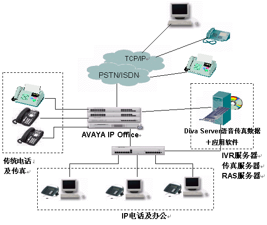 針對現(xiàn)代企業(yè)辦公通信的特點和要求,Avaya與Eicon經(jīng)過嚴(yán)格的產(chǎn)品互操作測試,及應(yīng)用調(diào)試共同推出了企業(yè)一體化辦公平臺解決方案,該解決方案整合了兩家公司的交換機、語音傳真板卡的各自優(yōu)勢,既可以應(yīng)用于傳統(tǒng)的網(wǎng)絡(luò)環(huán)境,又能應(yīng)用于純IP的通信環(huán)境,將不同的應(yīng)用技術(shù)和網(wǎng)絡(luò)結(jié)合起來,做到真正的辦公一體化。