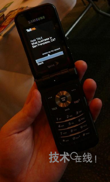 Tellme by Mobile服務現(xiàn)在為β版。首先,在手機上運行的、約200KB的J2ME支持客戶端軟件錄制用戶說出的檢索關鍵詞。然后,將錄制好的約2~3KB的語音數(shù)據(jù)轉發(fā)至Tellme運營的服務器。接著,服務器端便會識別來自語音文件的檢索關鍵詞,實際執(zhí)行檢索處理,并將結果以文本數(shù)據(jù)的形式返給客戶端。另外,還可將檢索結果與在線地圖等信息聯(lián)動。Tellme稱,利用了可獲得適于小屏幕手機的檢索結果的算法。