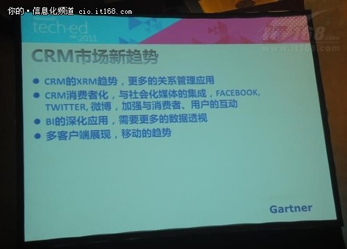 在CRM市場上,企業(yè)用戶的變化已經(jīng)開始考慮云計(jì)算,并且會考慮移動化的產(chǎn)品。另外,CRM客戶還會考慮社會化媒體的連接、適合的解決方案,CRM市場未來會越來越好。