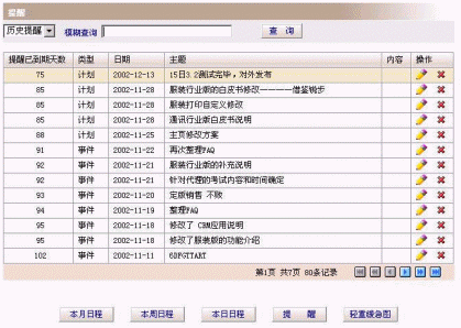 二、日程安排:結合各個公司的具體工作流程,或者根據(jù)自己的工作日程安排,電子化安排數(shù)據(jù),包括事件提醒,會議通知。 同時系統(tǒng)包括各個協(xié)同功能,比如各個部門、各個小組,各個地區(qū)進行協(xié)同工作如知識共享、信息共享、任務交接、工作代理。