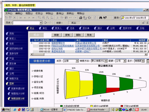 國內軟件企業(yè)在實踐中感受客戶需求,同時接受根據(jù)國外CRM的思想,摸索創(chuàng)造出CRM產品,比較典型的是廣智銷售型CRM。廣智公司是廣東比較成功的圖書軟件的開發(fā)商,在圖書軟件的推廣過程中遇到客戶關系管理的問題,然后研發(fā)了廣智銷售型CRM。