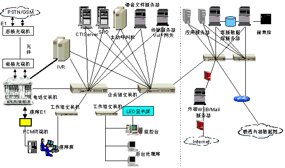 系統(tǒng)提供話務(wù)功能(例如:三方通話)、質(zhì)檢管理功能(例如:全程全席錄音)、系統(tǒng)管理功能(系統(tǒng)可視化配置、業(yè)務(wù)數(shù)據(jù)維護(hù))、系統(tǒng)監(jiān)控功能(例如:大屏幕聲光報(bào)警)、流程監(jiān)控功能(例如:對投訴處理監(jiān)控)、基本業(yè)務(wù)功能(業(yè)務(wù)咨詢、業(yè)務(wù)受理、話費(fèi)查詢、投訴建議、分銷商服務(wù)、大客戶服務(wù)、緊急服務(wù)等)、報(bào)表統(tǒng)計(jì)與信息查詢分析功能和增值業(yè)務(wù)功能(例如:新業(yè)務(wù)宣傳)等等。