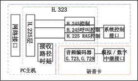用語(yǔ)音卡搭建的VoIP語(yǔ)音網(wǎng)關(guān)由語(yǔ)音卡在硬件一級(jí)實(shí)現(xiàn)語(yǔ)音的壓縮編解碼,以及模擬或數(shù)字電路接口。在具體實(shí)現(xiàn)方法上,可以通過單純的VoIP卡與傳統(tǒng)的模擬或數(shù)字語(yǔ)音卡組合來(lái)實(shí)現(xiàn)這些功能。而當(dāng)前的VoIP卡大多集成有模擬或數(shù)字電路接口,只需要一張卡即可實(shí)現(xiàn)全部功能。VoIP協(xié)議棧由PC主機(jī)實(shí)現(xiàn)。