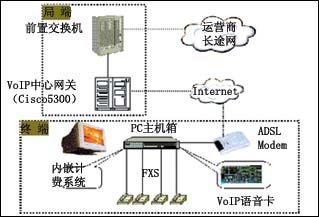 用戶端網(wǎng)關(guān)主機(jī)與計(jì)費(fèi)終端合二為一,PTA801八線VoIP語(yǔ)音卡的價(jià)格遠(yuǎn)低于八線VoIP網(wǎng)關(guān)。計(jì)費(fèi)系統(tǒng)以數(shù)據(jù)鏈路連接語(yǔ)音網(wǎng)關(guān)系統(tǒng),不再需要任何硬件計(jì)費(fèi)卡(設(shè)備)。局端可以利用各運(yùn)營(yíng)商現(xiàn)有的Cisco5300等設(shè)備。