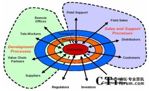 不同公司,生辰八字不同,發(fā)家史不同,決定了企業(yè)利益戰(zhàn)略點(diǎn)的不同,對(duì)統(tǒng)一通信的市場(chǎng)切入點(diǎn)和定位目標(biāo)就存在一些差異。軟件商采用以桌面軟件為基礎(chǔ),從上往下滲透的策略,設(shè)備商采用從基礎(chǔ)架構(gòu)出發(fā),從下往上突破的策略,但對(duì)統(tǒng)一通信的基本認(rèn)識(shí)可統(tǒng)歸為:以用戶為中心,實(shí)現(xiàn)跨時(shí)空的無(wú)限溝通。這里拋棄了網(wǎng)絡(luò)、終端、融合、平臺(tái)等技術(shù)層面的東西,而是完全從業(yè)務(wù)層面迎合了企業(yè)客戶的基本需求,企業(yè)聽到了自然心動(dòng)!耙赂幌刃蘼贰,企業(yè)要發(fā)展,就必須先修好這條通信大道。從中,我們也可看出統(tǒng)一通信不是一種技術(shù),也不是一項(xiàng)應(yīng)用,而是一種需求、一種企業(yè)對(duì)網(wǎng)絡(luò)、通信技術(shù)成熟發(fā)展之后的需求滿足的期望。此外,通過對(duì)這些主要廠家的UC解決方案進(jìn)行分析,也可以發(fā)現(xiàn),無(wú)論大家的口號(hào)怎樣,PPT里的網(wǎng)絡(luò)架構(gòu)如何多變,卻一致地采用SIP協(xié)議進(jìn)行會(huì)話控制,用IP協(xié)議進(jìn)行數(shù)據(jù)傳輸,通過應(yīng)用服務(wù)器(或類似網(wǎng)元)提供各種統(tǒng)一通信功能。
