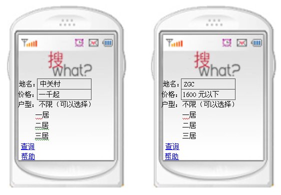 可智能識別用戶輸入的問題 和各種相關(guān)的說法, 如"1000起","2000以 下","西直門附近"等,并 能很容易增加各種語義規(guī)則 以支持更多、更靈活的輸入 |
