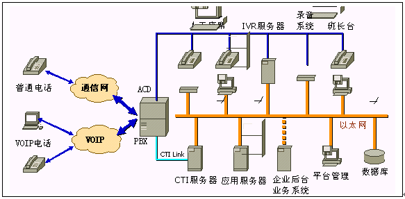 。。呼叫中心應(yīng)用系統(tǒng)的建設(shè)首先是構(gòu)建基礎(chǔ)框架系統(tǒng),然后在基礎(chǔ)框架之上建立實(shí)際的應(yīng)用系統(tǒng);A(chǔ)框架包括那些提供基本服務(wù)的子系統(tǒng),如ACD、IVR、錄音、呼叫管理監(jiān)控等。這些子系統(tǒng)的功能獨(dú)立于業(yè)務(wù)系統(tǒng),在實(shí)際應(yīng)用中按照需要經(jīng)過(guò)配置后,即可運(yùn)行并提供其功能服務(wù)。而系統(tǒng)中的IVR、座席子系統(tǒng)等則與實(shí)際業(yè)務(wù)系統(tǒng)密切相關(guān),需要利用開(kāi)發(fā)工具進(jìn)行應(yīng)用生成或在基本的系統(tǒng)模式下進(jìn)行功能模塊的擴(kuò)展開(kāi)發(fā)。