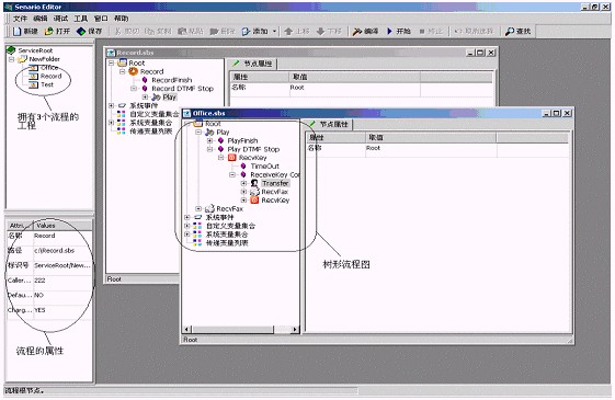 ·系統(tǒng)提供流程調(diào)試功能,調(diào)試器提供事件模擬器用來模擬"電話按鍵"以及其他與硬件相關(guān)的"事件"?梢栽跊]有語音板卡條件下實現(xiàn)摘機、語音播放、傳真收發(fā)、座席轉(zhuǎn)接等操作;