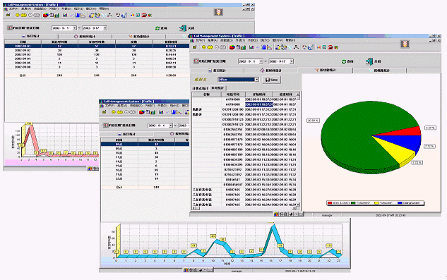 ·按照時間對來電以及Traffic進行統(tǒng)計,并且從立體折線圖中看到所選的日期內(nèi)各個時間段的呼叫分布數(shù);