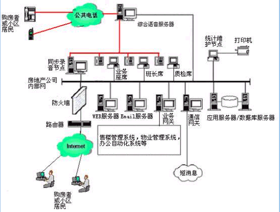 。。用戶利用電話、傳真、WEB、手機(jī)短信息、電子郵件等撥打某一特服號碼(如95xxx)進(jìn)入房地產(chǎn)多媒體客戶服務(wù)中心系統(tǒng),本系統(tǒng)依托房地產(chǎn)企業(yè)各類業(yè)務(wù)技術(shù)支持系統(tǒng),通過人工受理或自動語音服務(wù)等方式為各類客戶提供購房和物業(yè)管理服務(wù);形成了對外服務(wù)于客戶,對內(nèi)管理、分析、決策系統(tǒng)相結(jié)合的呼叫中心。