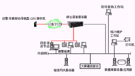 博宇科技110無線報警定位調(diào)度系統(tǒng)指揮調(diào)度中心的物理結(jié)構(gòu)由帶語音板卡的高性能工控機(jī)、CTI服務(wù)器、接警座席、統(tǒng)計(jì)維護(hù)管理工作站、數(shù)據(jù)庫服務(wù)器/應(yīng)用服務(wù)器、短消息網(wǎng)關(guān)服務(wù)器、同步數(shù)字錄音工作站、網(wǎng)絡(luò)系統(tǒng)和大屏幕投影儀等以及所開發(fā)的有關(guān)應(yīng)用軟件構(gòu)成。