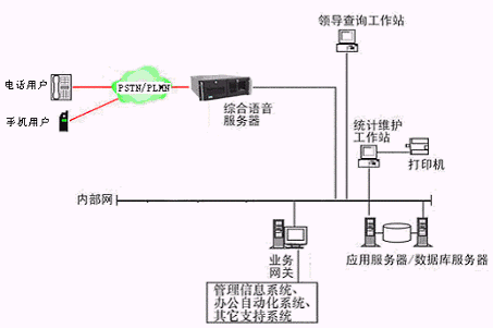 該員工工資自動語音查詢系統(tǒng)主要是由具有排隊功能的帶語音板卡的工控機、CTI服務(wù)器、IVR(交互式語音應(yīng)答)子系統(tǒng)、應(yīng)用服務(wù)器/數(shù)據(jù)庫服務(wù)器、業(yè)務(wù)網(wǎng)關(guān)子系統(tǒng)(可選)等硬件設(shè)備和應(yīng)用軟件組成。整個呼叫中心系統(tǒng)的總體設(shè)計方案遵循模塊化的的設(shè)計思想。