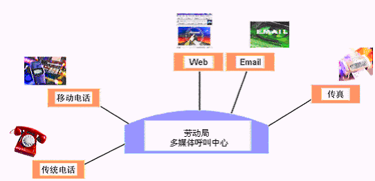 勞動(dòng)局多媒體呼叫中心系統(tǒng)支持的通訊方式包括:電話、傳真、手機(jī)、電子郵件、因特網(wǎng)服務(wù)、短消息等多種通訊媒介。